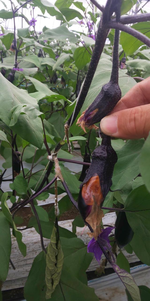 ナスのハウスに腐敗が多く見られるようになりました。急に冷え込んできたからでしょう。ん~頭が痛い!