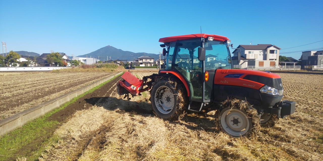 チクゴイズミという品種の小麦を種まきしています。トラクターで小畝を立てながら4条撒きで行います。水田なので湿害に注意です!