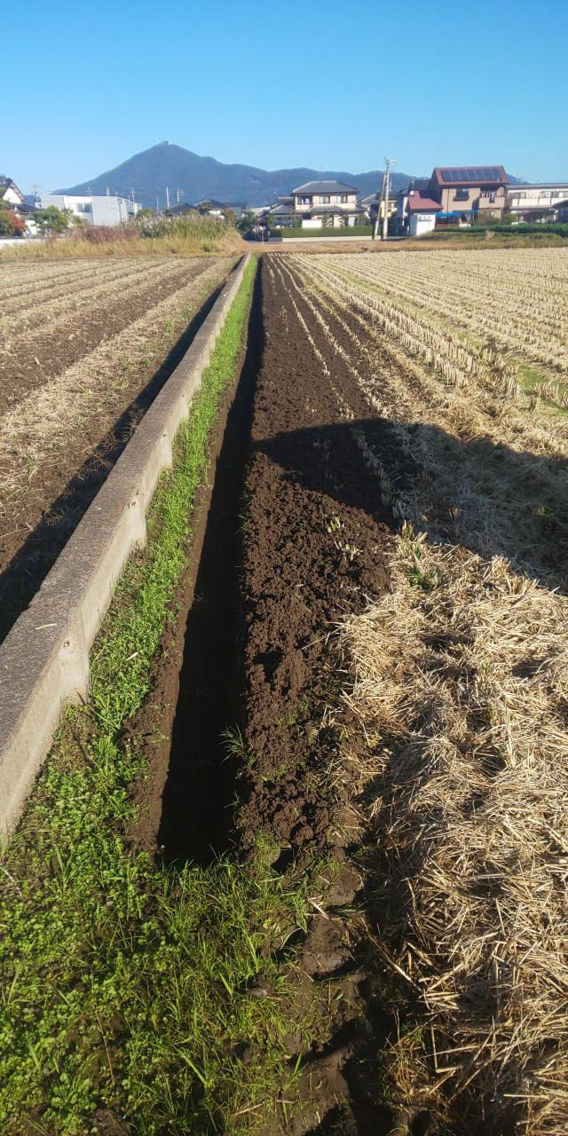 麦の作付準備で水捌けの悪い田んぼの明渠を掘ります。