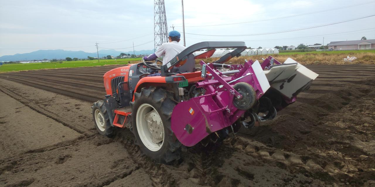 今季初ロマネスコの定植作業を行いました。20アール約6000株です。社員の九万田くんの野菜苗移植機操作が上手くなってきて嬉しいです。