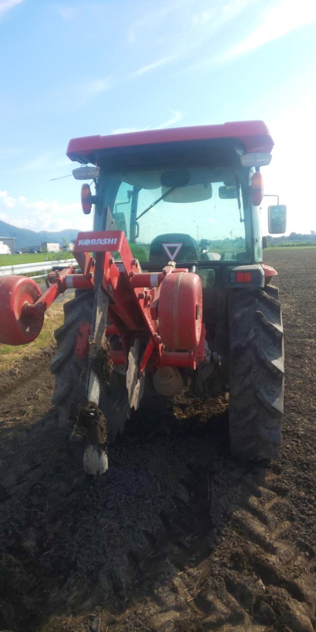 明渠の後にサブソイラーで弾丸暗渠を施します。1本引きなので何度も往復しなければならないので根気よく作業を行います。